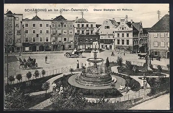 AK Schärding, Oberer Stadtplatz mit Rathaus