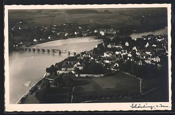 AK Schärding a. Inn, Teilansicht mit Brücke
