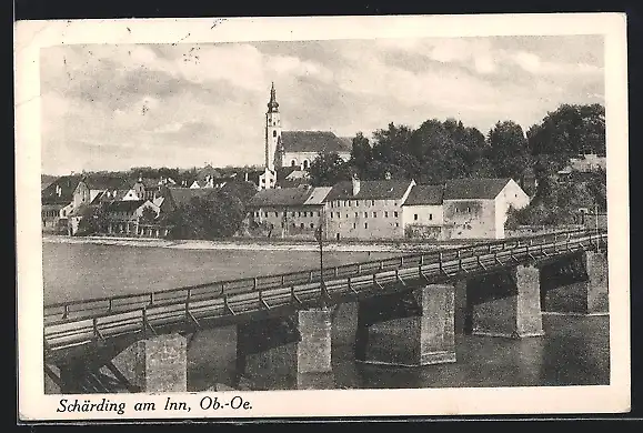 AK Schärding am Inn, Ortsansicht mit Flusspartie
