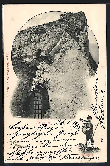 AK Schafberg, Baude auf dem Schafberg, Gemsjäger