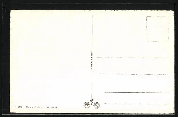 Personenbezogene Daten auf der Rückseite der Karte wurden durch blauen Textmarker unkenntlich gemacht. Die blauen Stellen sind auf die Vorderseite durchgeweicht und wirken sich negativ auf das Postkartenfoto aus
