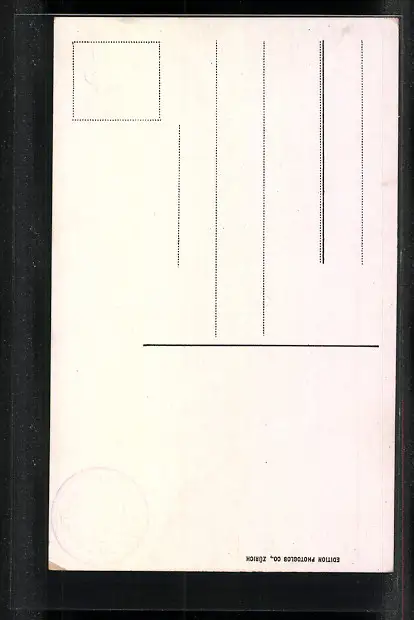 Personenbezogene Daten auf der Rückseite der Karte wurden durch blauen Textmarker unkenntlich gemacht. Die blauen Stellen sind auf die Vorderseite durchgeweicht und wirken sich negativ auf das Postkartenfoto aus