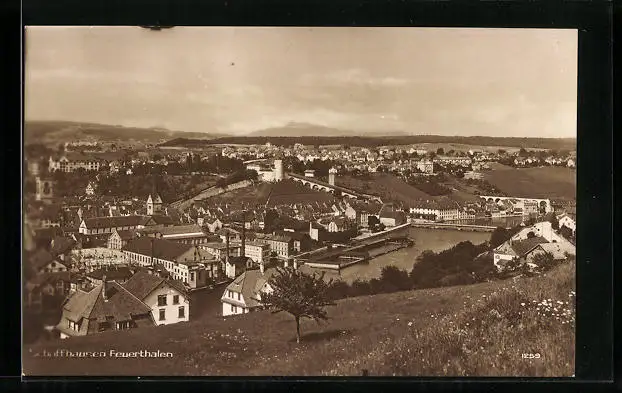 AK Schaffhausen, Ortsansicht aus der Vogelschau, Feuerthalen
