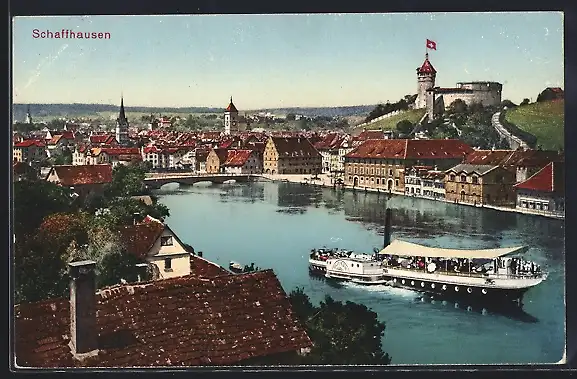 AK Schaffhausen, Ortsansicht mit Dampfer