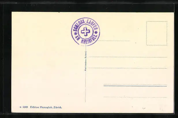 Personenbezogene Daten auf der Rückseite der Karte wurden durch blauen Textmarker unkenntlich gemacht. Die blauen Stellen sind auf die Vorderseite durchgeweicht und wirken sich negativ auf das Postkartenfoto aus
