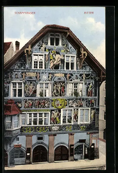 AK Schaffhausen, Ritter, Gebäude mit Fassadenmalerei