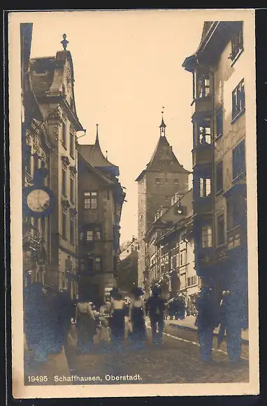 AK Schaffhausen, Strassenansicht Oberstadt mit Passanten