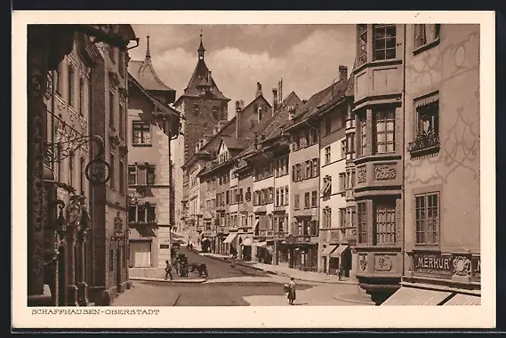 AK Schaffhausen, Strassenpartie mit Kirche in der Oberstadt