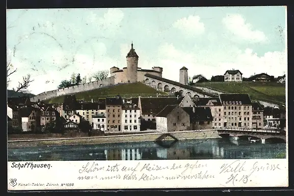 AK Schaffhausen, Uferpartie mit Burg