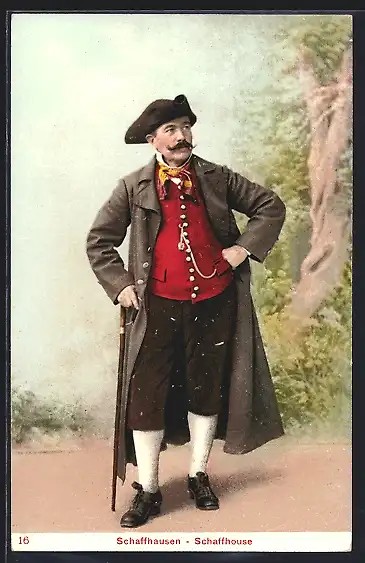 AK Schaffhausener in Tracht mit Stab und Mantel