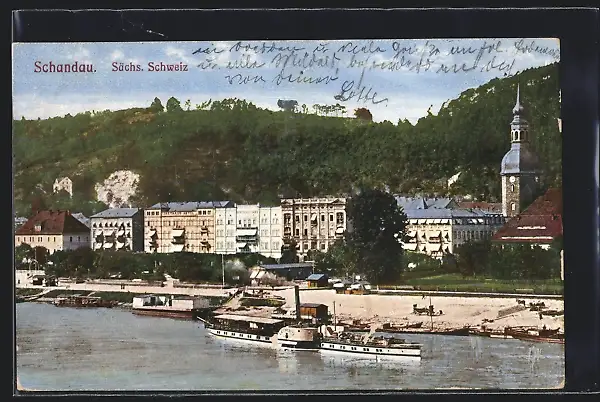 AK Schandau, Ortsansicht, Dampfer auf der Elbe