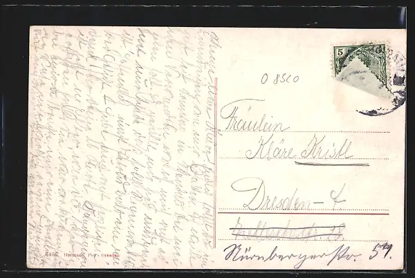 alte Ansichtskarte, gelaufen, Briefmarke entfernt, guter Zustand