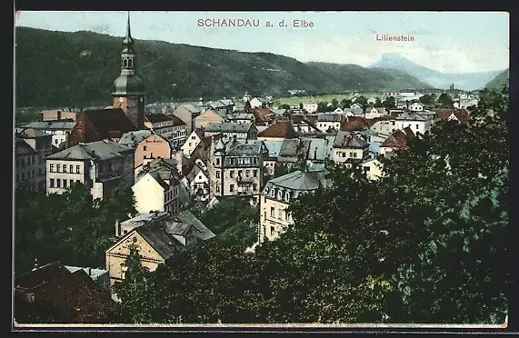 AK Schandau a. d. Elbe, Teilansicht mit Kirche und Lilienstein