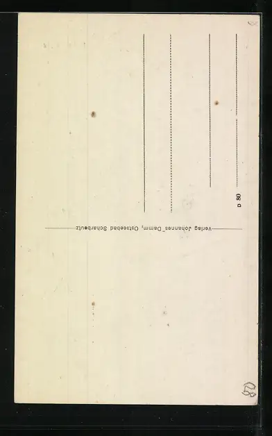 Personenbezogene Daten auf der Rückseite der Karte wurden durch blauen Textmarker unkenntlich gemacht. Die blauen Stellen sind auf die Vorderseite durchgeweicht und wirken sich negativ auf das Postkartenfoto aus