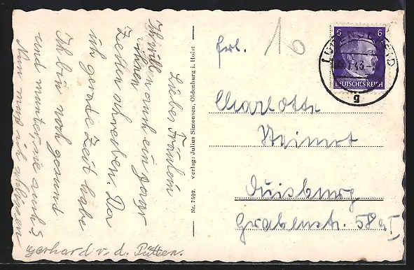 alte Ansichtskarte, gelaufen 1943, guter Zustand