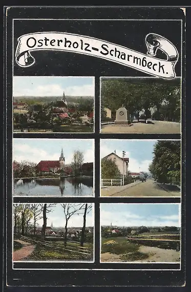 AK Scharmbeck, Perspektiven der Kirche und Ortsansicht aus der Vogelschau