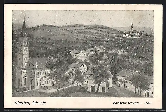 AK Scharten /Ob.-Oe., Ortsansicht aus der Vogelschau