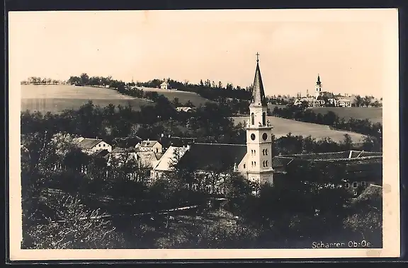 AK Scharten, Ortsansicht mit Kirche aus der Vogelschau
