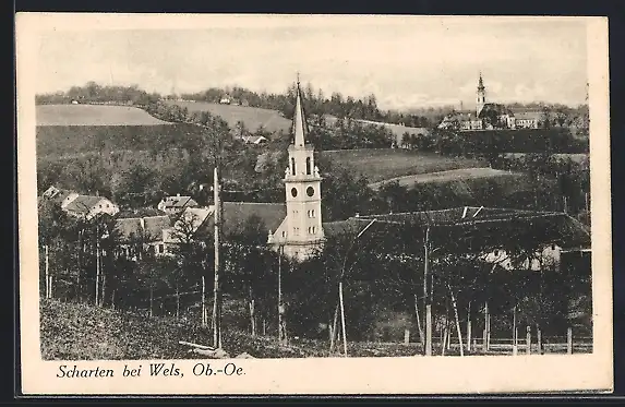 AK Scharten bei Wels, Blick auf die Kirche