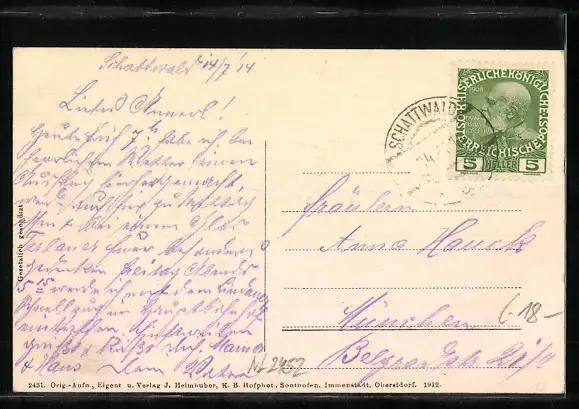 alte Ansichtskarte, gelaufen 1914, guter Zustand