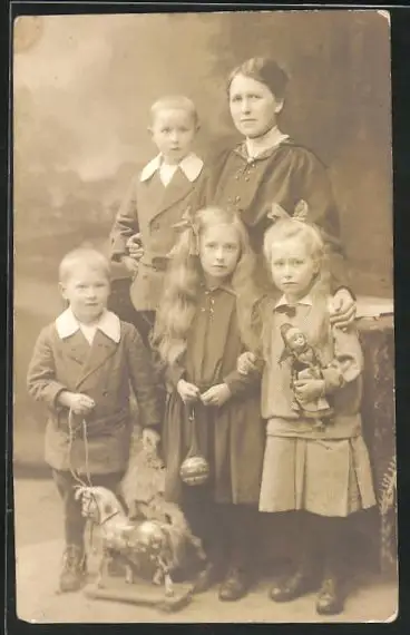 AK Schaukelpferd, Familienbild Mutter mit Kindern