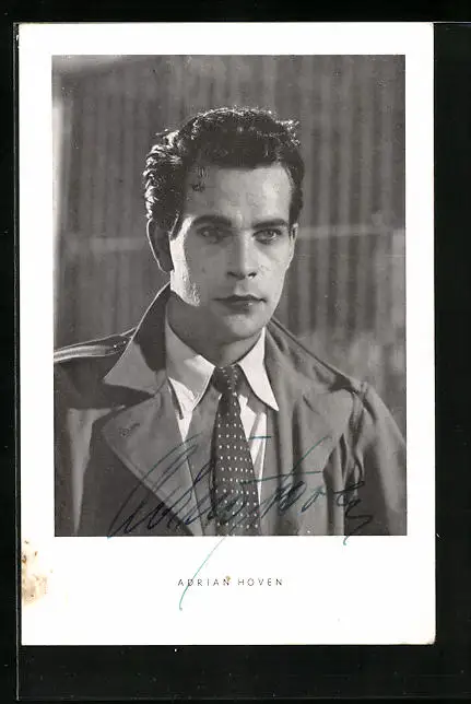 AK Schauspieler Adrian Hoven in Anzug und Mantel, Autograph