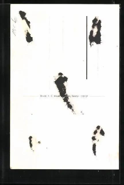 Personenbezogene Daten auf der Rückseite der Karte wurden durch blauen Textmarker unkenntlich gemacht. Die blauen Stellen sind auf die Vorderseite durchgeweicht und wirken sich negativ auf das Postkartenfoto aus