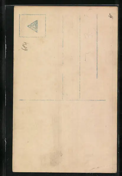 Personenbezogene Daten auf der Rückseite der Karte wurden durch blauen Textmarker unkenntlich gemacht. Die blauen Stellen sind auf die Vorderseite durchgeweicht und wirken sich negativ auf das Postkartenfoto aus
