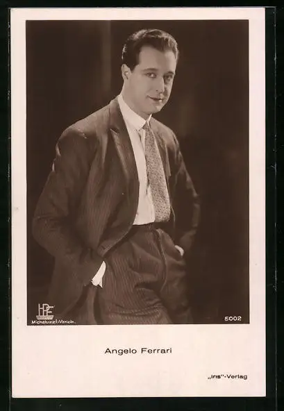 AK Schauspieler Angelo Ferrari im Nadelstreifenanzug in legerer Pose
