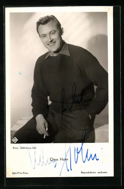 AK Schauspieler Claus Holm posiert mit Zigarette, Autograph