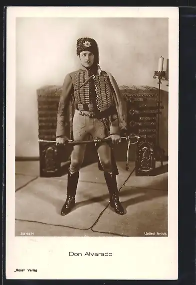 AK Schauspieler Don Alvarado in einer Filmrolle mit Uniform und Säbel