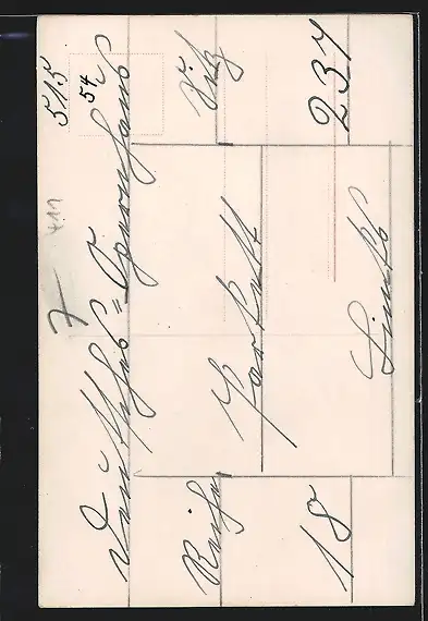 Personenbezogene Daten auf der Rückseite der Karte wurden durch blauen Textmarker unkenntlich gemacht. Die blauen Stellen sind auf die Vorderseite durchgeweicht und wirken sich negativ auf das Postkartenfoto aus
