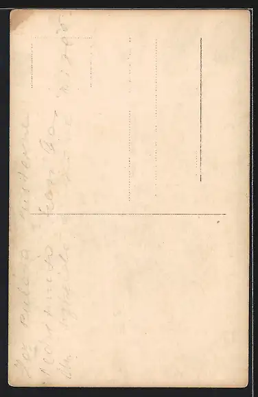Personenbezogene Daten auf der Rückseite der Karte wurden durch blauen Textmarker unkenntlich gemacht. Die blauen Stellen sind auf die Vorderseite durchgeweicht und wirken sich negativ auf das Postkartenfoto aus