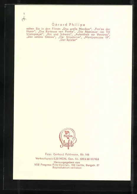 AK Schauspieler Gerard Philipe schaut in die Kamera