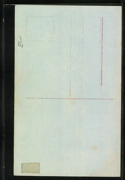 Personenbezogene Daten auf der Rückseite der Karte wurden durch blauen Textmarker unkenntlich gemacht. Die blauen Stellen sind auf die Vorderseite durchgeweicht und wirken sich negativ auf das Postkartenfoto aus