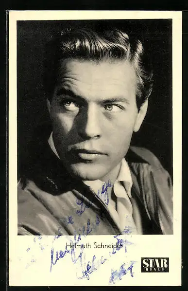 AK Schauspieler Helmuth Schneider, in einer Lederjacke portraitiert, Autogramm