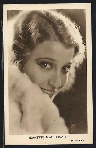 AK Schauspieler Jeannette Mac Donald Portrait im weissen Pelz