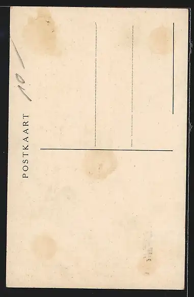 Personenbezogene Daten auf der Rückseite der Karte wurden durch blauen Textmarker unkenntlich gemacht. Die blauen Stellen sind auf die Vorderseite durchgeweicht und wirken sich negativ auf das Postkartenfoto aus