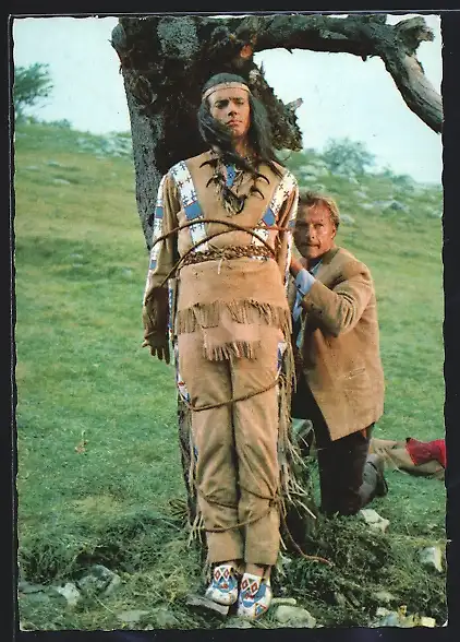 AK Schauspieler Lex Barker und Pierre Brice in Winnetou II.