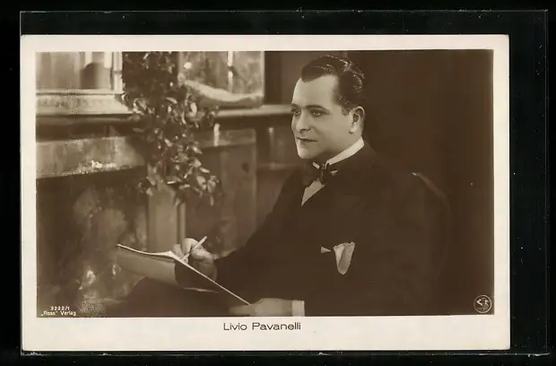 AK Schauspieler Livio Pavanelli mit Fliege schreibt einen Brief