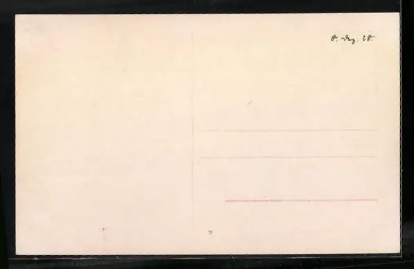 Personenbezogene Daten auf der Rückseite der Karte wurden durch blauen Textmarker unkenntlich gemacht. Die blauen Stellen sind auf die Vorderseite durchgeweicht und wirken sich negativ auf das Postkartenfoto aus