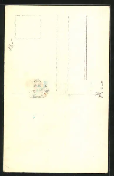 Personenbezogene Daten auf der Rückseite der Karte wurden durch blauen Textmarker unkenntlich gemacht. Die blauen Stellen sind auf die Vorderseite durchgeweicht und wirken sich negativ auf das Postkartenfoto aus