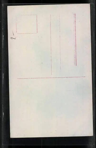 Personenbezogene Daten auf der Rückseite der Karte wurden durch blauen Textmarker unkenntlich gemacht. Die blauen Stellen sind auf die Vorderseite durchgeweicht und wirken sich negativ auf das Postkartenfoto aus