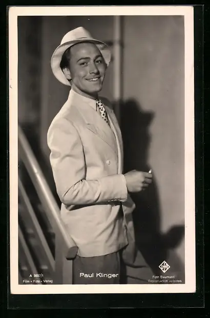 AK Schauspieler Paul Klinger im Anzug mit Zigarette