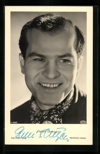AK Schauspieler Rene Deltgen fröhlich lachend, Autograph