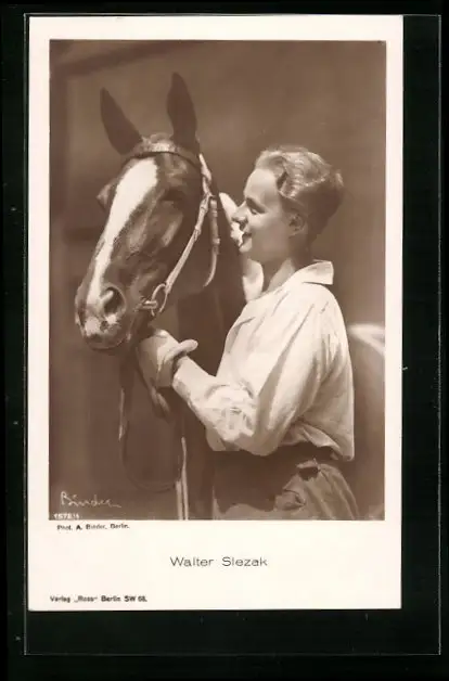AK Schauspieler Walter Slezak mit einem Pferd