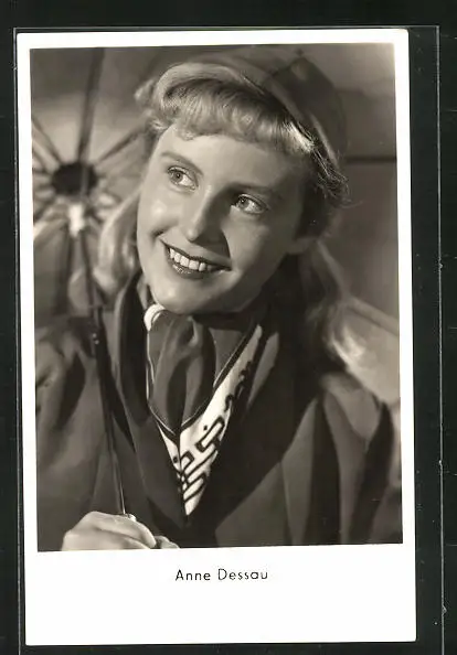 AK Schauspielerin Anne Dessau mit Regenschirm