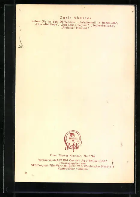 Ein Angebot in Ansichtskarten Künstler: Schauspieler - 49.396 weitere Angebote in dieser Kategorie
