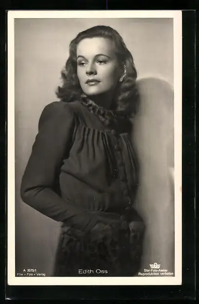 AK Schauspielerin Edith Oss in schwarzer Kleidung