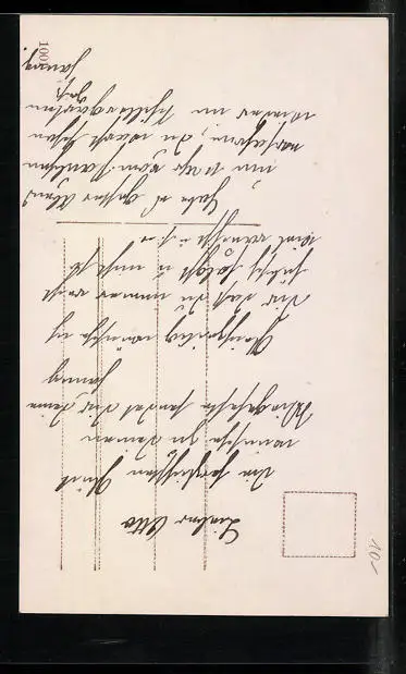 Personenbezogene Daten auf der Rückseite der Karte wurden durch blauen Textmarker unkenntlich gemacht. Die blauen Stellen sind auf die Vorderseite durchgeweicht und wirken sich negativ auf das Postkartenfoto aus